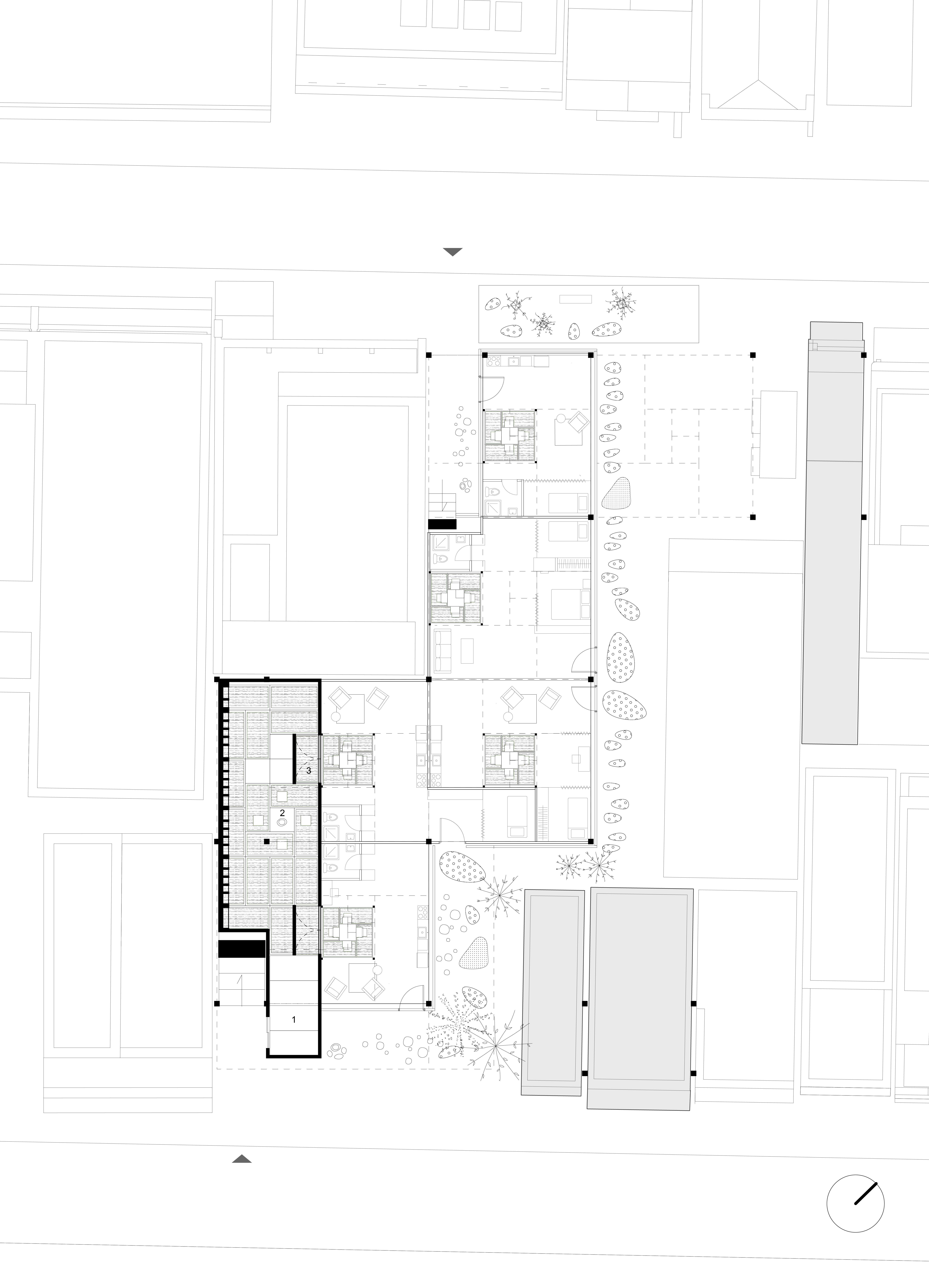 dense urban fabric, the project proposes to revitalize the slowness of everyday