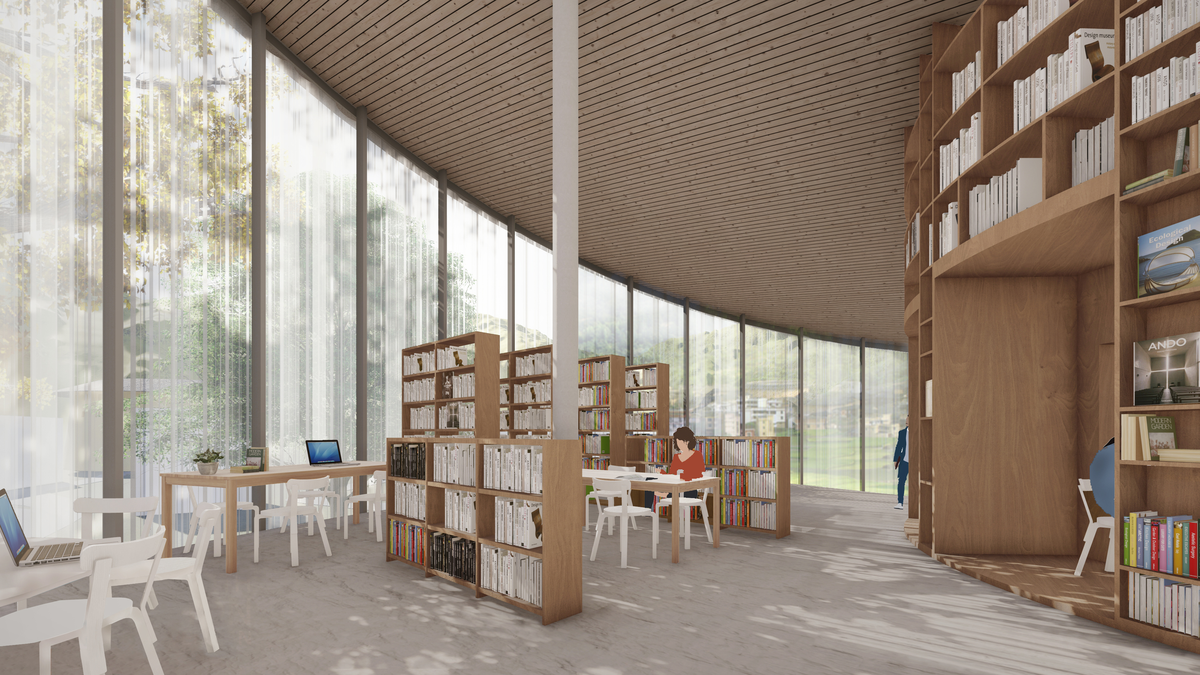 Situated at the remote mountain side of Fujian Province Putian City, the Revert Library position itself at the center of a 5000 people Xia Ban Village. Inspired by the local traditional community housing Tulou’s circular geometry, fortified mud walls and central courtyard, our proposal develope a contemporary concept of a library with the cultural responsibility to inherit local architecture, and the transcendental urban role to address the problems of young population collapse and decline of literacy rates of this isolated community.
